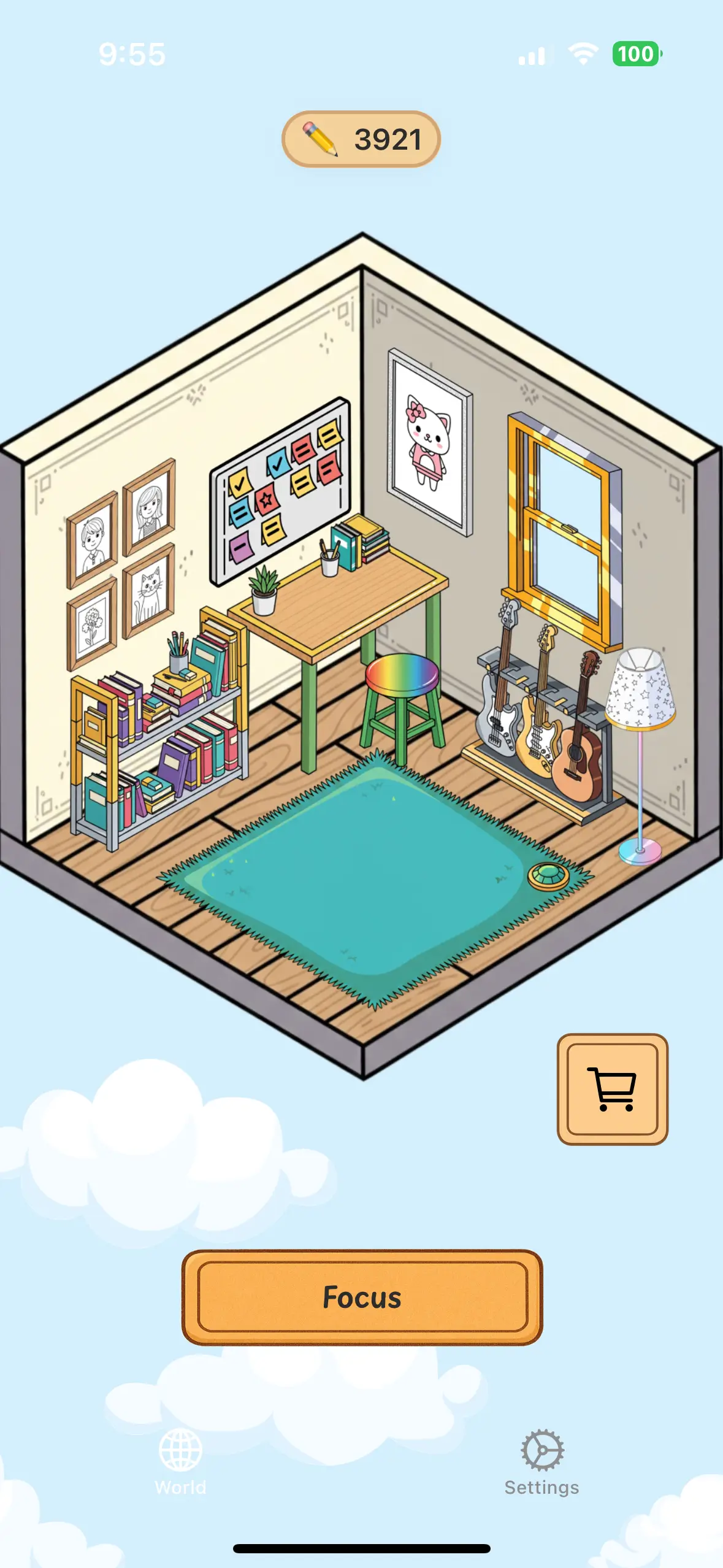 Watch magic happen as you work. Your talented artist buddy transforms an empty studio into an inspiring creative space. Every focus session brings new discoveries - from finding scattered pencils to unlocking beautiful decorations. It's not just productivity; it's collaborative art creation.